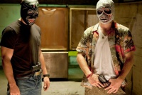 Вообще то «Дикарей» отнести к жанру триллера можно, но с некоторыми оговорками. Этот фильм по духу ближе к творчеству Тарантино. То есть в первую очередь авторское кино, а уже потом все остальное. Казалось бы все серьезно. Отрезанные головы, натуралистические убийства и пытки. Но с другой стороны невозможно воспринимать в серьез противостояние парочки лоботрясов с мощной преступной группировкой. Которой руководит Сальма Хайек. Злобной и расчетливой злодейкой она кажется только в те моменты, когда орет и ругается на испанском. А когда говорит на английском (украинском) становится даже как то забавно. Колоритный акцент тому виной (однозначно зачет студии Le Doyen за дубляж) или еще, что не совсем понятно, однако факт остается фактом.