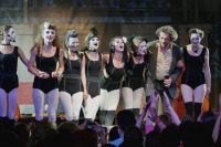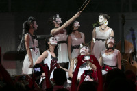 История рождения гражданского достоинства, сыгранная на языке кабаре, девушками в белом гриме и черных балетных пачках.