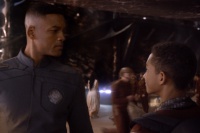 Немного о сюжете. Действие картины разворачивается тысячу лет спустя после того, как человечество было вынуждено покинуть Землю из-за того, что на ней стало невозможно жить. Окружающая среда стала враждебной к человеку. Опасность представляли дикие звери, птицы и даже воздух, для жизни с которым всем людям будущего уже необходимы были специальные ингаляторы... Вместо этого человечество создает колонию на планете Нова Прайм. Новый дом для землян охраняет Объединенная Армия Рейнджеров, где важный пост занимает генерал Сайфера Рэйджа (Уилл Смит). Джейден, в свою очередь, стал его сыном по имени Китай Рэйдж. Он тоже мечтает стать рейнджером, но отец, постоянно проводящий время в далеких экспедициях, не верит, что мальчик уже готов к такой работе. Однажды Сайфер решает взять с собой сына в экспедицию, но их корабль попадает в астероидный поток и совершает аварийную посадку, при которой все, кроме Рэйджей, погибают. Сайфер получает тяжелое ранение и не может передвигаться. Он поручает Китаю задание – добраться до хвостовой части крушения, чтобы вызвать помощь.