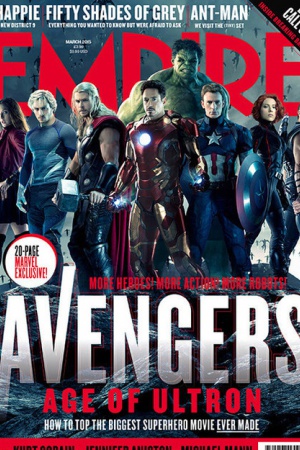 Элизабет Олсен (Алая Ведьма), Ааро Тейлор-Джонсон (Ртуть), Крис Хемсворт (Тор), Роберт Дауни мл. (Железный человек), Крис Эванс (Капитан Америка), Скарлетт Йоханссон (Черная вдова), Джереми Реннер (Соколиный глаз) и Марк Руффало (Халк) украсили обложку журнала Empire.