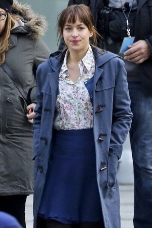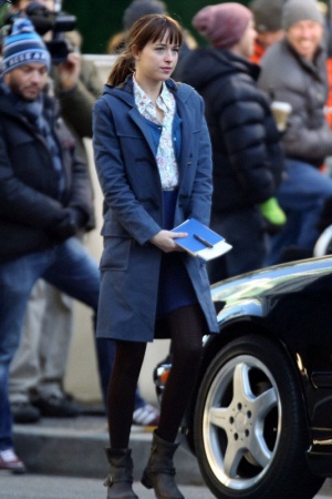 Американская актриса Дакота Джонсон сейчас работает над первой своей большой ролью в кино. 24-летняя девушка стала главной героиней экранизации эротического романа "50 оттенков серого" и работа над образом, судя по фотографиям со съемочной площадки, дается ей очень нелегко.