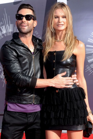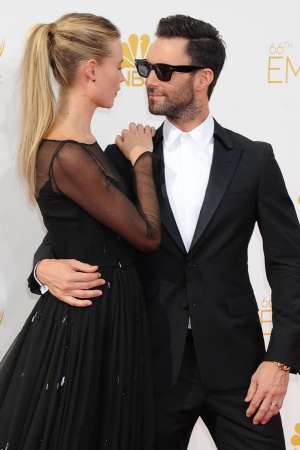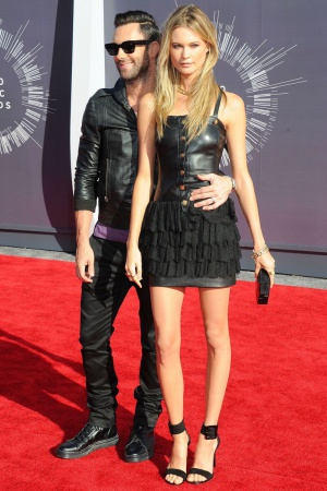Солист группы Maroon 5 Адам Левин впервые после свадьбы вышел в свет вместе со своей супругой, моделью Бехати Принслу.