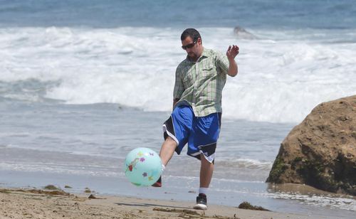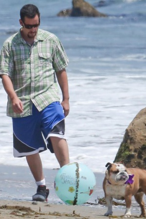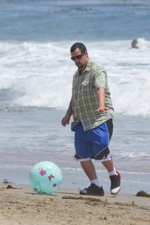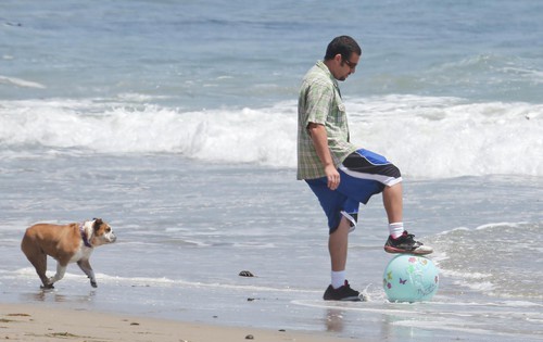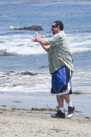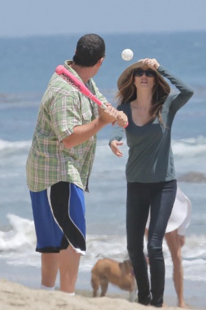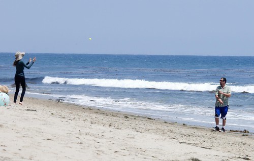 Дочки Адама оказались больше заинтересованы в спокойных играх с песком. А вот сам актер и его жена решили провести время активно. Адам и Джеки сыграли в бейсбол и немного попинали мяч по пляжу.