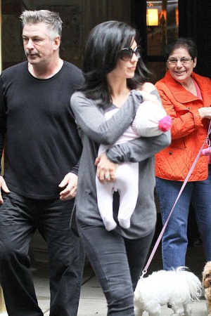 На днях Алека, его жену Хиларию и крошку Кармен сфотографировали во время прогулки по Нью-Йорку. Семья вышла пройтись со своими двумя собаками. Но животными занималась ассистентка звездной пары. Сам актер иногда проявлял внимание к питомцам, но большую часть времени посвятил жене и дочке. Хилария носила малышку на руках и при этом прикрывала ей лицо ладонью, чтобы папарацци ни в коем случае не разглядели, на кого она похожа.