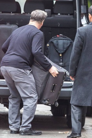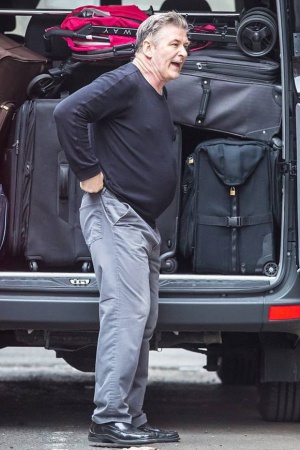 Возле дома Алека Болдуина можно было наблюдать за тем, как он грузил свой многочисленный багаж в машину.