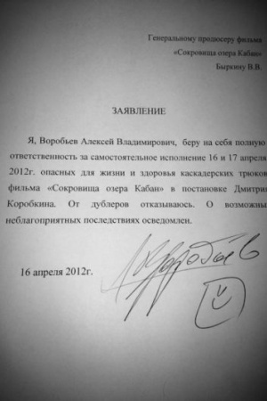 Продюсеры фильма настояли на подписании документа, снимающего ответственность за возможные травмы Алексея.