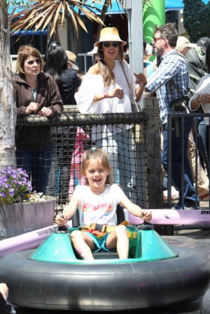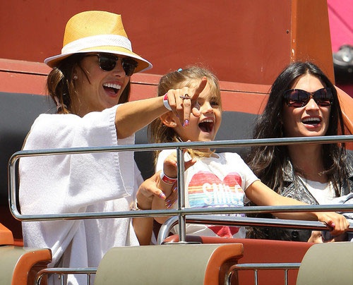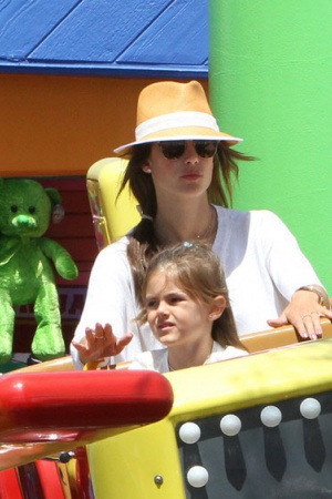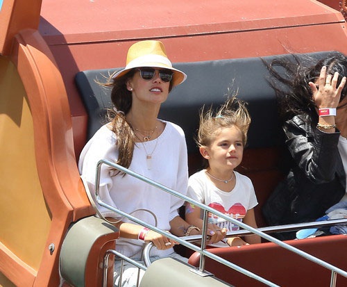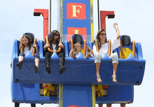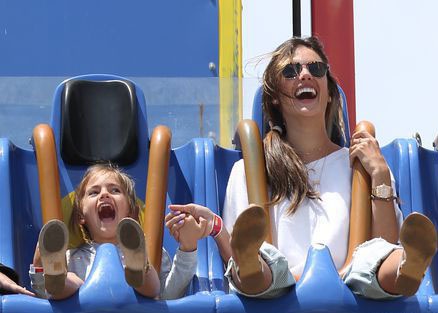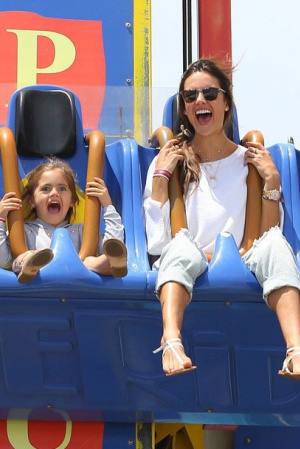 Алессандра с удовольствием прокатилась на множестве каруселей, бесстрашно не держась за поручни. Модель получила от прогулки едва ли не большее удовольствие, чем ее дочь, тоже не упустившая шанса испытать свои нервы на прочность.