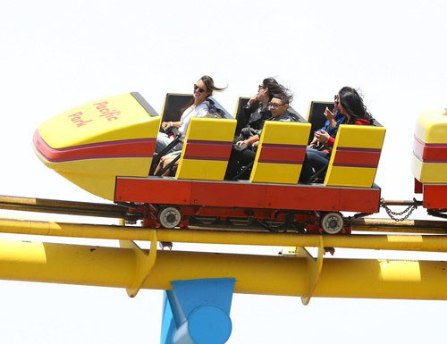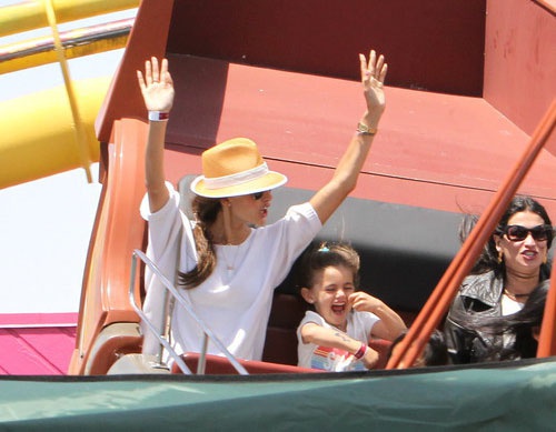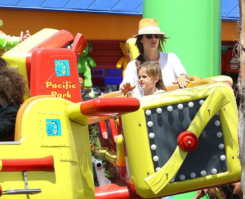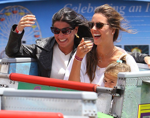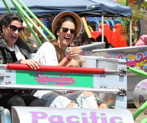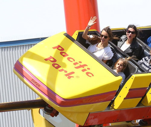 Алессандра Амбросио выбралась вместе с дочкой, сыном и любимым мужем на поиски острых ощущений в парк развлечений в Санта-Монике.