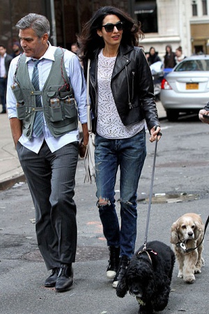 В перерыве между съемками Амаль отсматривала готовый материал, а также прогуливалась с Джорджем и двумя собаками пары.