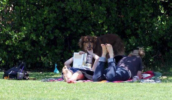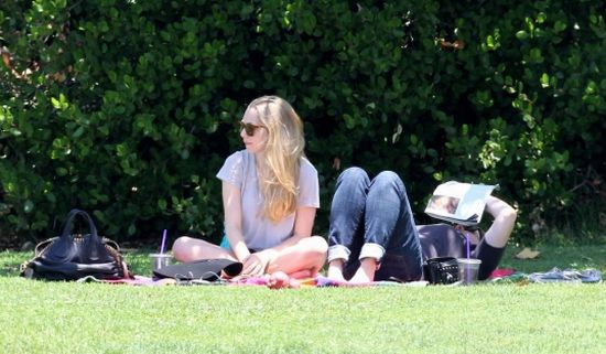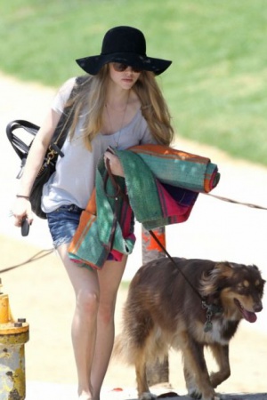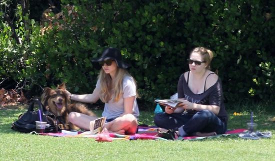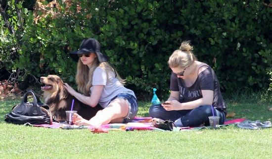 Аманда Сайфред провела неплохой денек в Голливуде в компании подружки и собаки Флинна. Троица разбила пикник на траве, валялась, загорала, читала книжки и расслаблялась, как могла.
