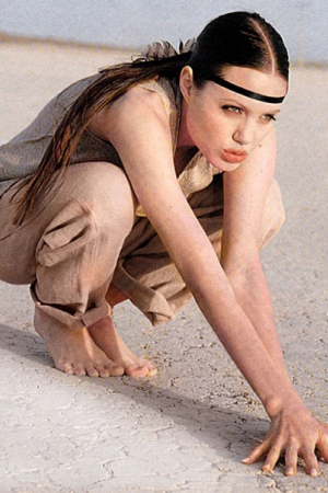 Тогда Джоли была фотомоделью для рекламы брендов одежды Debenhams и Miss Selfridge. Несмотря на странные позы, прически и одежду, Анджелина все равно выглядит сексуально и волнующе.