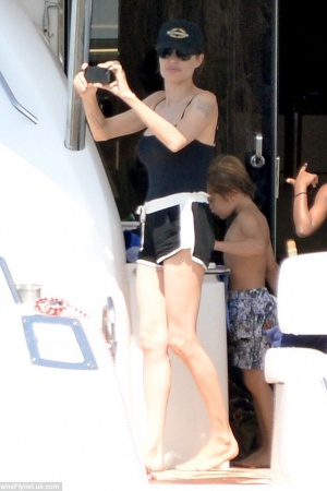 Супруги были одеты довольно просто: Анджелина выбрала для прогулки короткие черные шорты и майку, а Брэд был одет в свободные шорты и футболку.