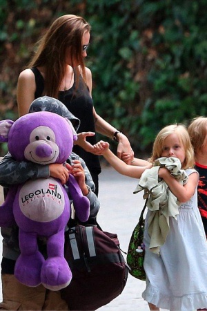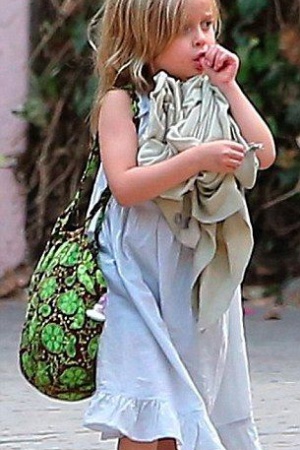 Во время семейного шопинга в Санта-Барбаре, на который Джоли взяла 12-летнего приемного сына Пакса и 5-летних близнецов Нокса и Вивьен, папарацци заметили, что девочка до сих пор продолжает сосать палец, как младенец. Сонная малышка Вивьен прижимала к себе любимое одеяльце и положила большой палец себе в рот.