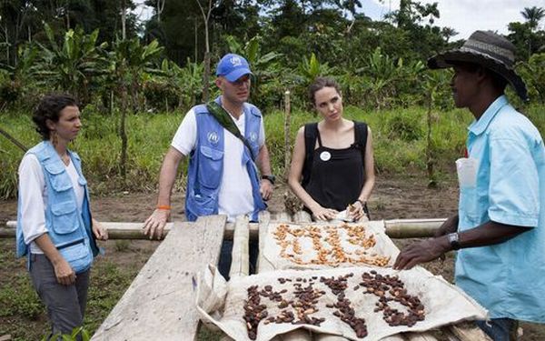 Анджелина посетила небольшую деревушку Барранка Бермейя на границе Эквадора и Колумбии. В ней проживает 50 семей, и 60 процентов из них — это колумбийские беженцы. Джоли пообщалась с местными жителями и понаблюдала за их образом жизни.
