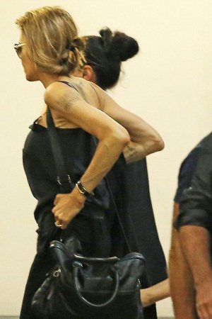 На днях 38-летнюю кинозвезду сфотографировали в аэропорту Сиднея, где проходят съемки ее новой режиссерской работы: черный топ на тонких бретельках обнажил чрезмерно худые руки актрисы.