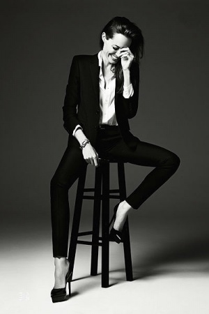 Автором снимков выступил сам Эди Слиман, креативный директор модного дома Saint Laurent. Наряды актрисы, соответственно, были от Saint Laurent. Анджелина сама захотела сниматься в черно-белой гамме, позируя в привычном для себя минималистичном стиле. Снимки получились очень лаконичные и невероятно чувственные.