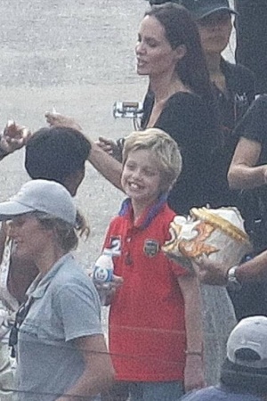 Что интересно, Анджелина Джоли и Брэд Питт в данный момент поделили своих шестерых детей поровну. Известно, что Брэд с тремя другими их детьми - Мэддоксом и близнецами Вивьен и Нокс, находится в Лондоне, где снимается в фильме "Машина войны".