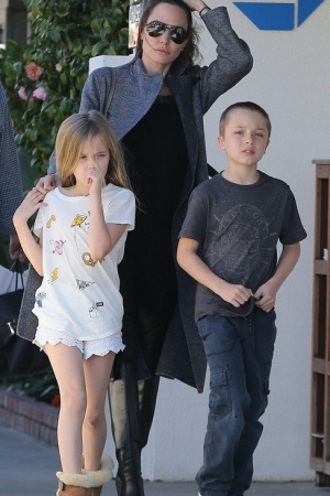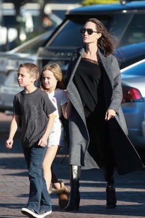 Анджелина Джоли с 8-летними близнецами Вивьен и Ноксом в субботу отправились на шоппинг. 41-летнюю актрису подловили в торговом центре Country Mart в Малибу.