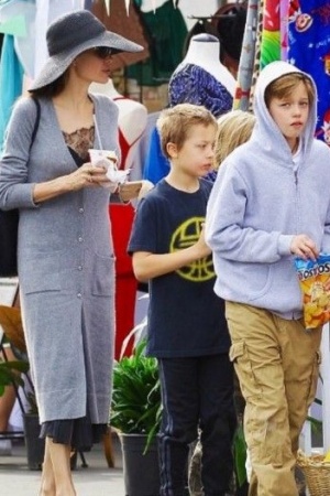 Во время прогулки Анджелина разрешила детям перекусить фаст-фудом. Шайло была замечена с пакетом чипсов, а Джоли купила себе кока-колу и рогалик.