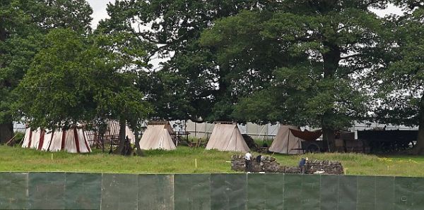 Папарацци все же удалось сделать пару снимков съемочной площадки – но издалека. На этих кадрах видно, что для картины сооружается средневековый лесной лагерь.