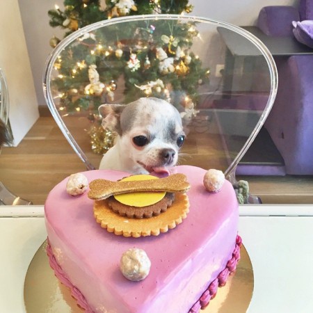 "Это нереальные тортики для собак сделаны из всяких мясных ингредиентов, шоколада для собак и сырного печенья! Без сахара! Можете считать меня буржуйкой, но я очень люблю радовать своих близких и любимых!" , — поделилась с поклонниками Анфиса, показав и пса, сидящего за столом, на котором стоит вкусный тортик.