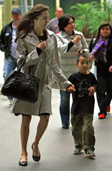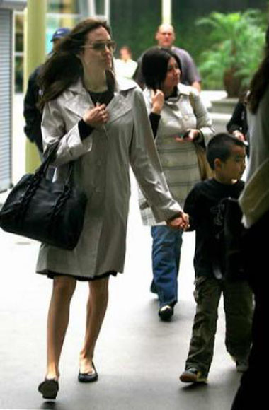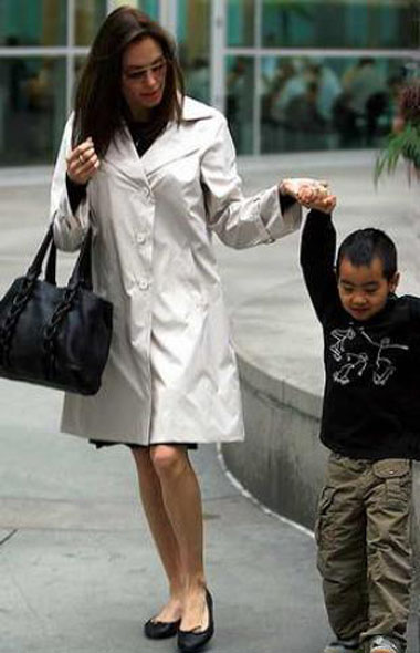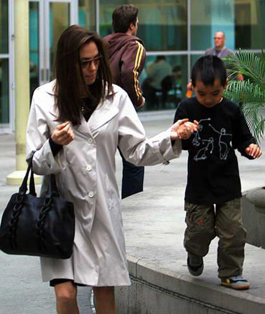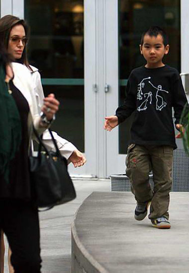 Папарацци засняли Анжелину Джоли с сыном Мэддоксом выходящими из кинотеатра.
