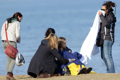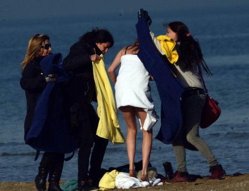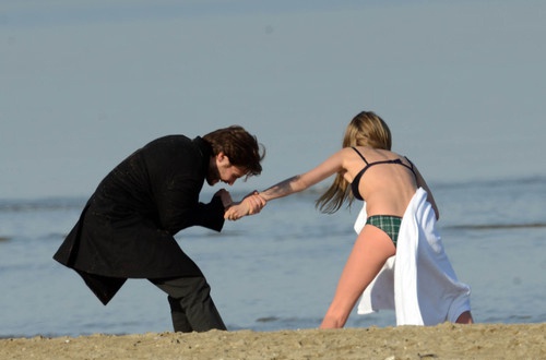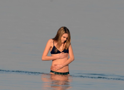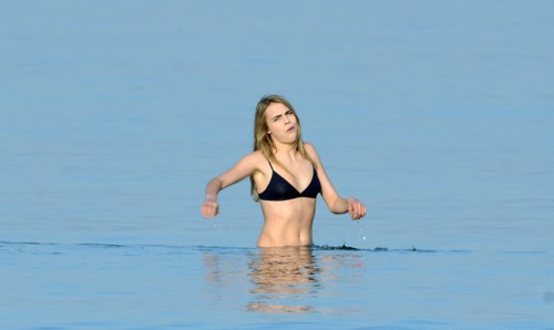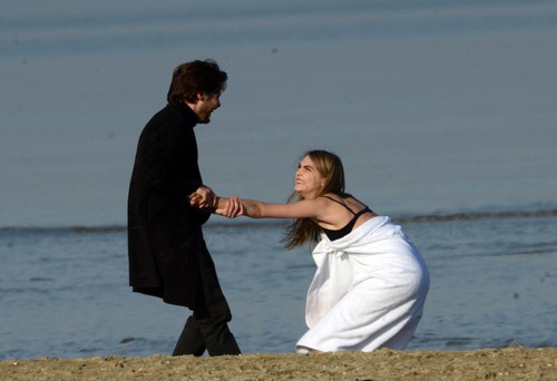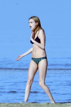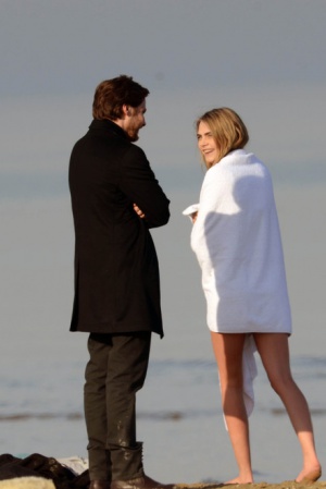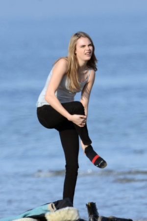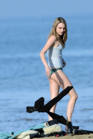 Кара Делевинь продолжает работать на съемках картины "Ангельское личико". Ради роли модели пришлось даже искупаться в холодном море.