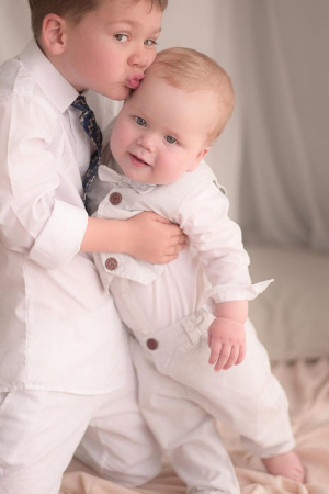 В Instagram знаменитость показала снимки из семейного фотосета. На них звездная мама позировала с 5-летним Глебом и 10-месячным Никитой.