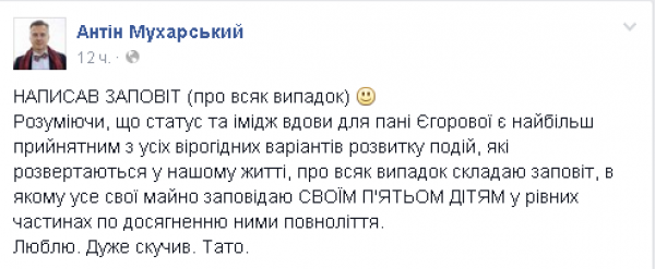 Антин Мухарский, который в конце марта презентовал свою книгу о войне и разводе с женой – украинской телеведущей Снежаной Егоровой – решил перестраховаться и написал завещание.