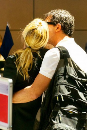 В аэропорт супруги приехали вместе с дочерью Стеллой. В зону досмотра Антонио вошел, крепко держа Мелани за руку. Пока все семейство ждало своей очереди, Бандерас то и дело обнимал свою "половинку" за талию.