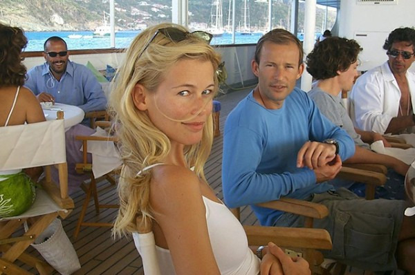 На этих фотографиях молодые и счастливые Элизабет и Хью загорают на борту яхты и общаются с друзьями за большим столом. Фото были сделаны в мае 2000 года, за несколько месяцев до расставания Элизабет и Хью.