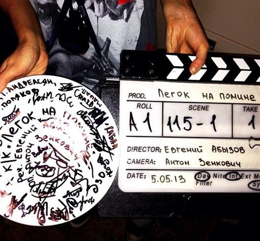 - По традиции после первого дубля или кадра (мы после кадра) режиссер разбивает тарелку, на которой расписывалась съемочная группа о штатив или телегу (на которой ездит камера по рельсам). И все разбирают потом на память о проекте осколочки.))".