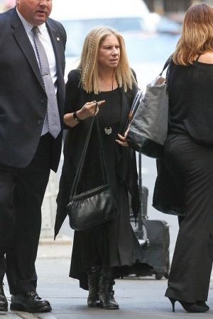 Папарацци удалось сделать несколько снимков 72-летней звезды во время прогулки по Нью-Йорку: Барбра демонстрировала стильную прическу и выглядела элегантно в черном удлиненном платье.