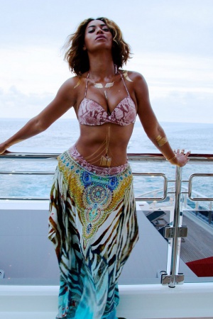 На этот раз певица опубликовала серию ярких летних снимков, сделанных во время каникул в Корсике, где поп-дива отмечала свой день рождения. На фото красотка Би позирует в бикини, демонстрируя роскошные формы, а также появляется вместе с супругом Джей-Зи, наглядно опровергая слухи о проблемах в отношениях. Помимо этого, артистка поделилась с поклонниками фотографиями своей очаровательной дочурки Блю Айви.