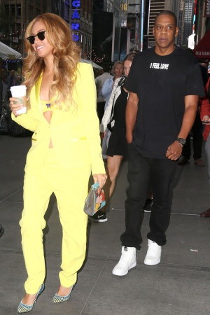 Звездная пара была замечена в Нью-Йорке, где Бейонсе появилась на публике в ярком желтом наряде, демонстрирующем ее пышные формы.