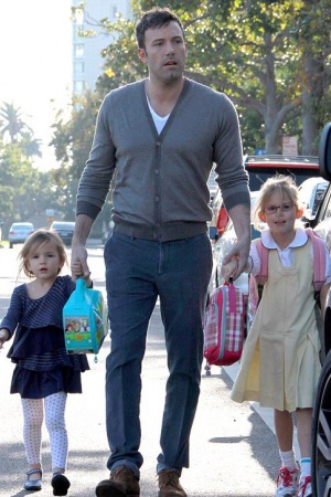 Папарацци подловили Бена в Брентвуде как раз таки за исполнением своих родительских обязанностей: актер и режиссер забрал из школы Вайолет и Серафину и вел их домой.