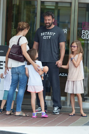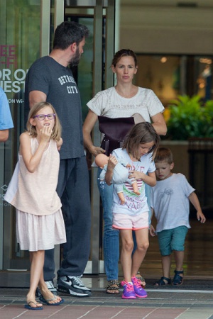 Имитация семейного благополучия. Пока весь мир уже привык к тому, что голливудская пара Бен Аффлек и Дженнифер Гарнер разводятся, их трое детей пока и не догадываются, что у родителей не всё замечательно. Так, во время совместных прогулок мать и отец ведут себя, как нормальная семья и даже не забывают надевать кольца на безымянные пальцы. Звёздное семейство в полном составе было замечено на прогулке в Атланте. Сперва Бен, Дженнифер и их трое детишек Вайолетт, Серафина и Сэмюэл отправились на небольшой шоппинг по обувным магазинам, затем вместе сходили в кино.