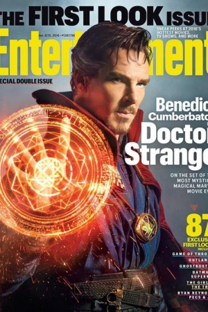 Фото Камбербэтча в образе супергероя появилось на обложке журнала Entertainment Weekly. Стальной блеск в глазах, слегка сжатые губы, огненная штуковина на ладони - доктор Стрэндж в исполнении Бенедикта определенно не уступит Железному человеку и Бэтмену.