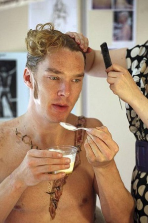 Появились фотографии, как Бенедикт Камбербэтч превращается в монстра Франкенштейна для участия в пьесе the Creature, поставленной по знаменитому роману Мэри Шелли.