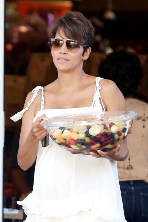 С огромной тарелкой вкуснейших и свежих фруктов папарацци сфотографировали счастливую мамочку. Судя по всему, фруктовый салат актриса планировала скушать на ужин!