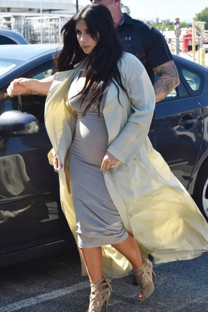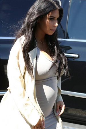 Ким Кардашьян пока не готова перейти к ношению одежды для беременных. 34-летняя звезда реалити-шоу была замечена в обтягивающем наряде от Wolford, которое не слишком подходит для женщины на пятом месяце беременности.