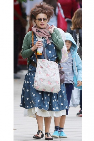 Английская актриса Хелена Бонем Картер известна своим особенным чувством стиля. На днях она в очередной раз продемонстрировала его во время прогулки с сыном по Северному Лондону.