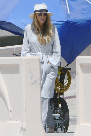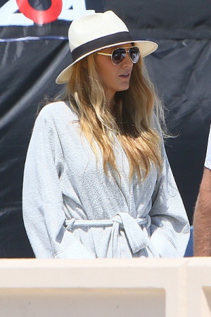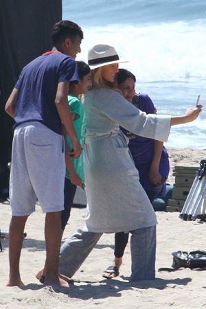Актриса Блейк Лайвли занята на съемках драмы режиссера Хауме Кольет-Серра под названием "Отмель" в Малибу, где бродит перед камерой вдоль кромки воды в белом халате, темных очках и соломенной шляпе. В перерывах между дублями актриса тоже не скучает - делает селфи с поклонниками.