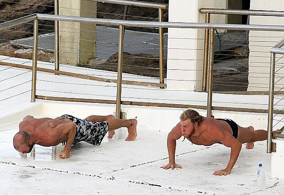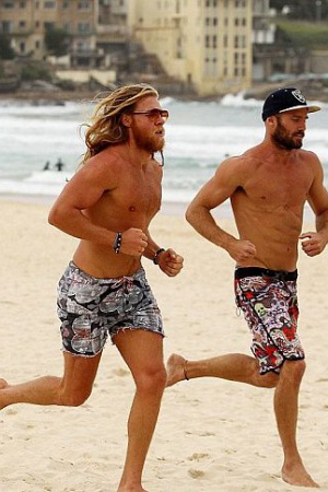 Бойфренд Мур действительно очень похож на Тарзана. У него мускулистое тело, пышная светлая борода и длинные волосы, которые развевались за ним, пока он раскачивался над водой на толстой веревке. Видно было, что Ханниган в отличной форме и постоянно тренируется, чтобы быть в форме для своей опасной профессии. К слову, тренировки он не прекращает и на пляже, предпочитая пробежки по песку и отжимания.