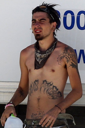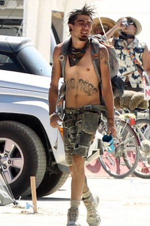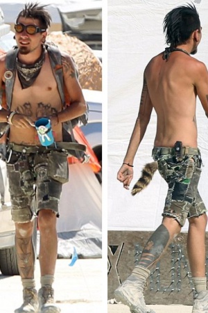 Молодой человек предпочитает прятаться от папарацци, но на фестивале Burning Man, который завершился в начале сентября в пустыне Невады, Эй-Джею скрыться от их объективов не удалось. А поскольку из-за жары он ходил полуголым, фотографам удалось внимательно рассмотреть звездного родственника.