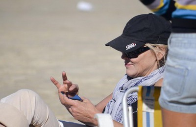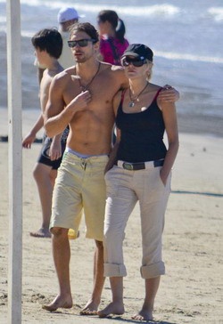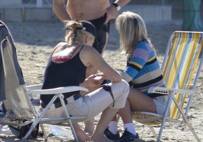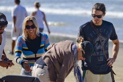 Шэрон, похоже, вовсе не мечтает о загаре и прячет лицо под черной кепкой и очками. А вот ее аргентинский бойфренд Мартин Мика позволил публике полюбоваться своим телом.