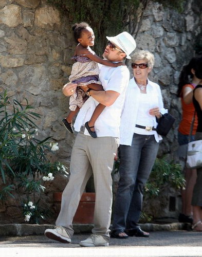 На днях фотографы отщелкали прогулку Брэда с Захарой и его мамой.