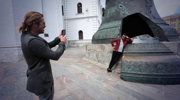 Телеведущий убедил звез Брэда Питта, что делать фотоснимки на фоне знаменитых мест во время путешествий – это дурной вкус. Потому он заставил знаменитого актера снимать себя, позируя на фоне Царь-пушки и Царь-колокола.