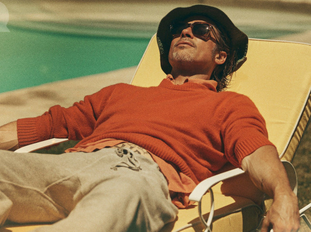 Сейчас авторы известного глянца опубликовали фрагменты интервью с Брэдом Питтом и снимки, которые уже успели покорить сеть. На кадрах брутальный актер примерил наряды, напоминающие стиль 90-х. В частности, Брэд Питт красовался перед камерой с зачесанными мокрыми волосами, в классических брюках, ярких кофтах и солнцезащитных очках.