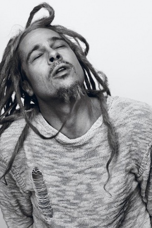 На страницах глянца 48-летний киноактер появляется в различных образах, позируя знаменитому фотографу Стивену Кляйну с дрэдами на голове и с пистолетом в руке.